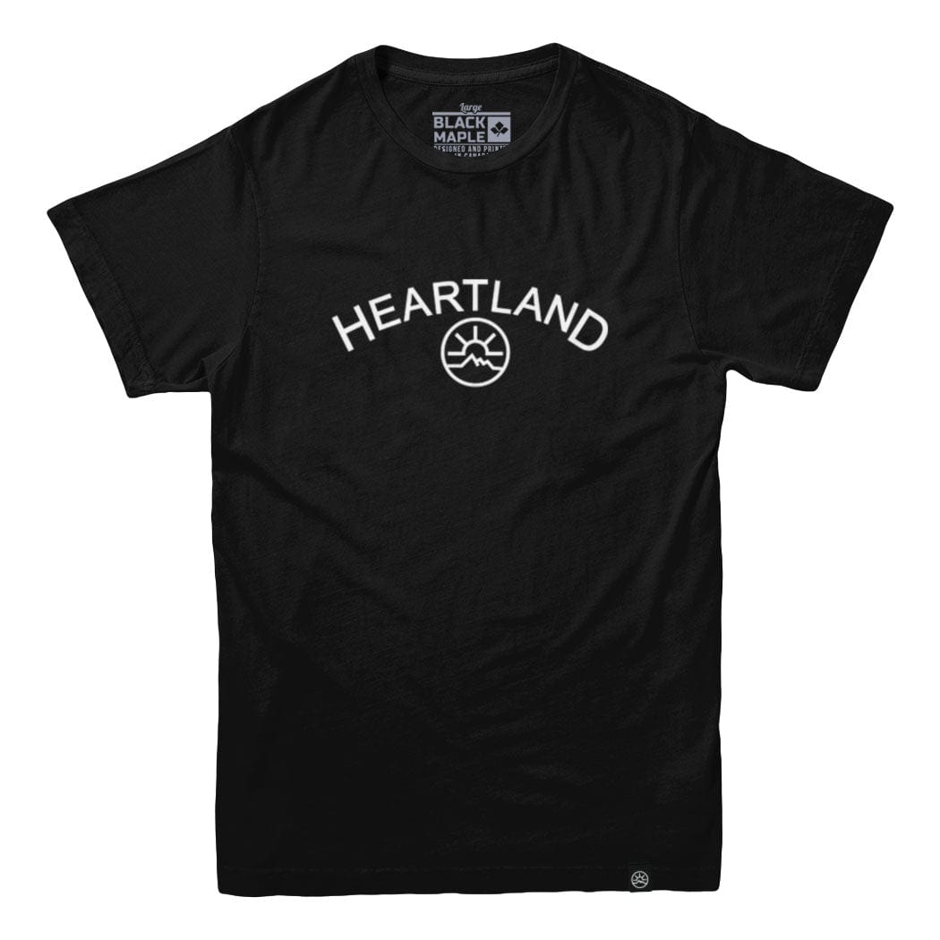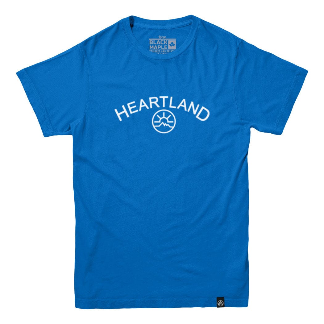 The Heartland Ranch Logo T-Shirt refers to the beautiful and rugged mountain range that surrounds the beloved Heartland landscape, and will always greet you at the ranch's entrance.