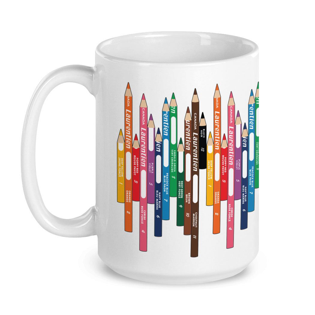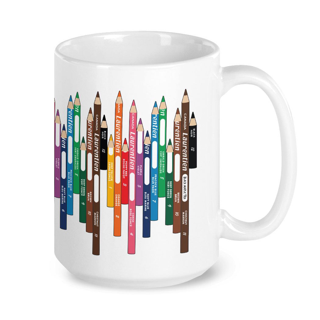Introducing the Laurentien Coloured Pencils 15oz Mug! This generously sized mug features a vibrant graphic of everyone's favourite pencil crayons growing up on both sides, perfect for teachers, art lovers and creatives. With its colourful design, it brings a touch of nostalgia and inspiration to your daily coffee or tea ritual. Enjoy your favourite beverages in this charming and artistic mug.