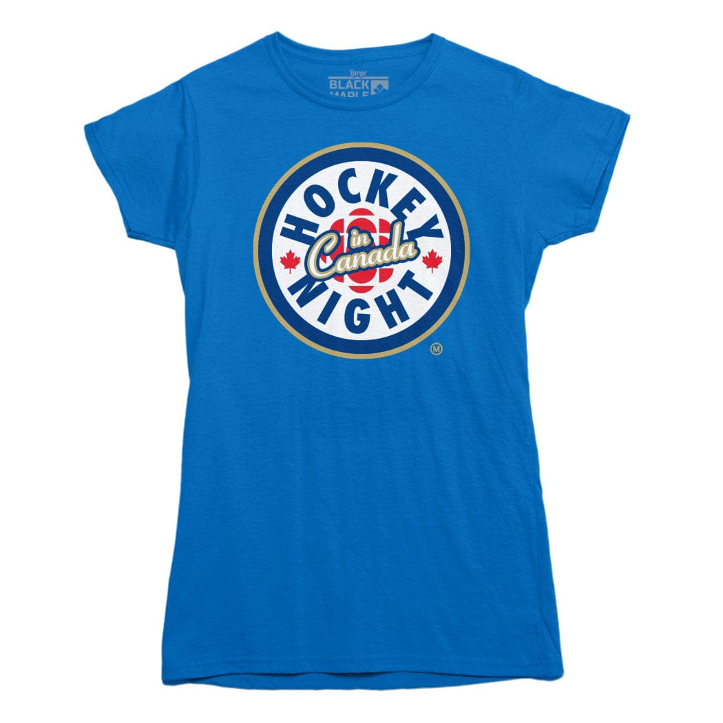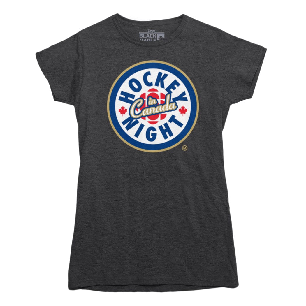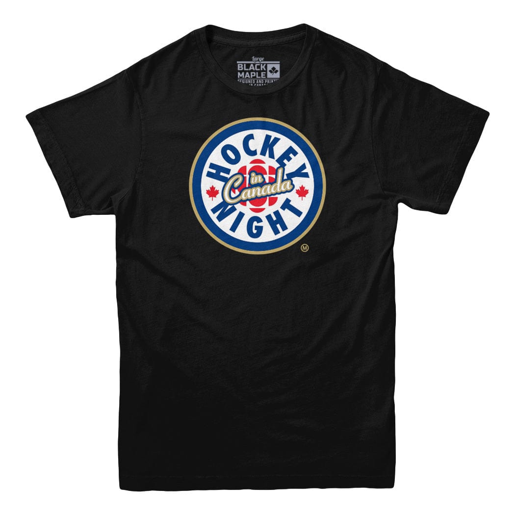 It's Saturday night. Whether you're sitting around the tv at home with your family or down at the pub with your buds, for a few hours every week there is an electric atmosphere coast to coast. Share your love of the best game around in this Hockey Night In Canada Tee.