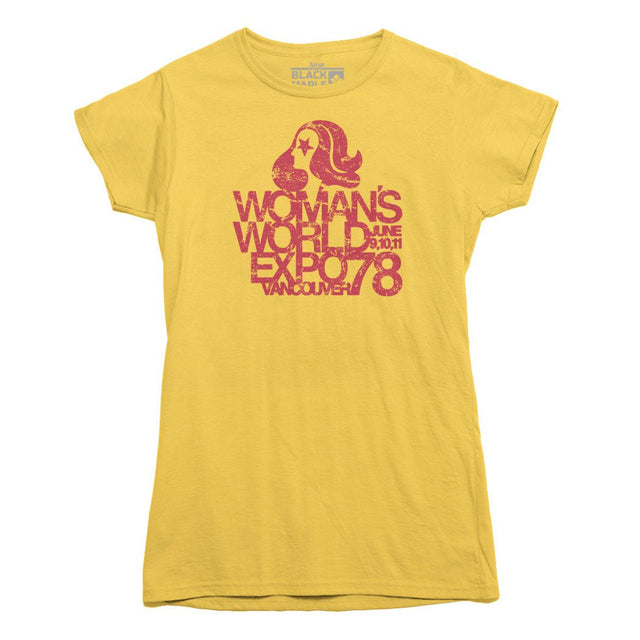 Woman's World Expo 78 T-shirt - Womens T-shirt / Yellow / S est en rupture de stock et sera expédié dès qu’il sera de retour en stock.