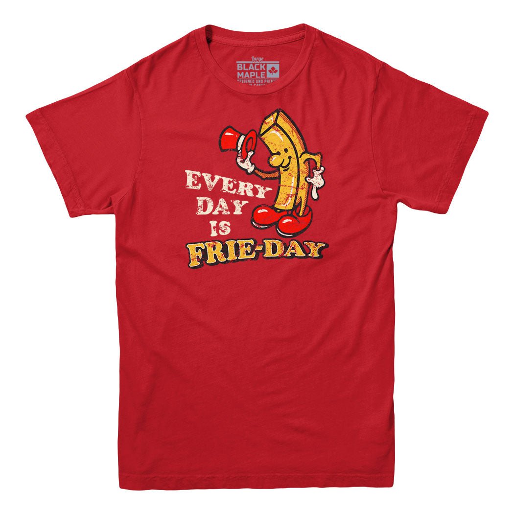Get ready to add a dash of humor and a sprinkle of fries to your daily wardrobe with our "Every Day is Frie-day T-shirt." This tee is for all the fry fanatics who believe that every day should be a "Frie-day." With a delightful graphic of very polite fry, it's the perfect way to add a touch of fun to your style. Show off your love for crispy golden fries and your sense of humor with this shirt. Get ready to make every day feel like a delicious Frie-day!