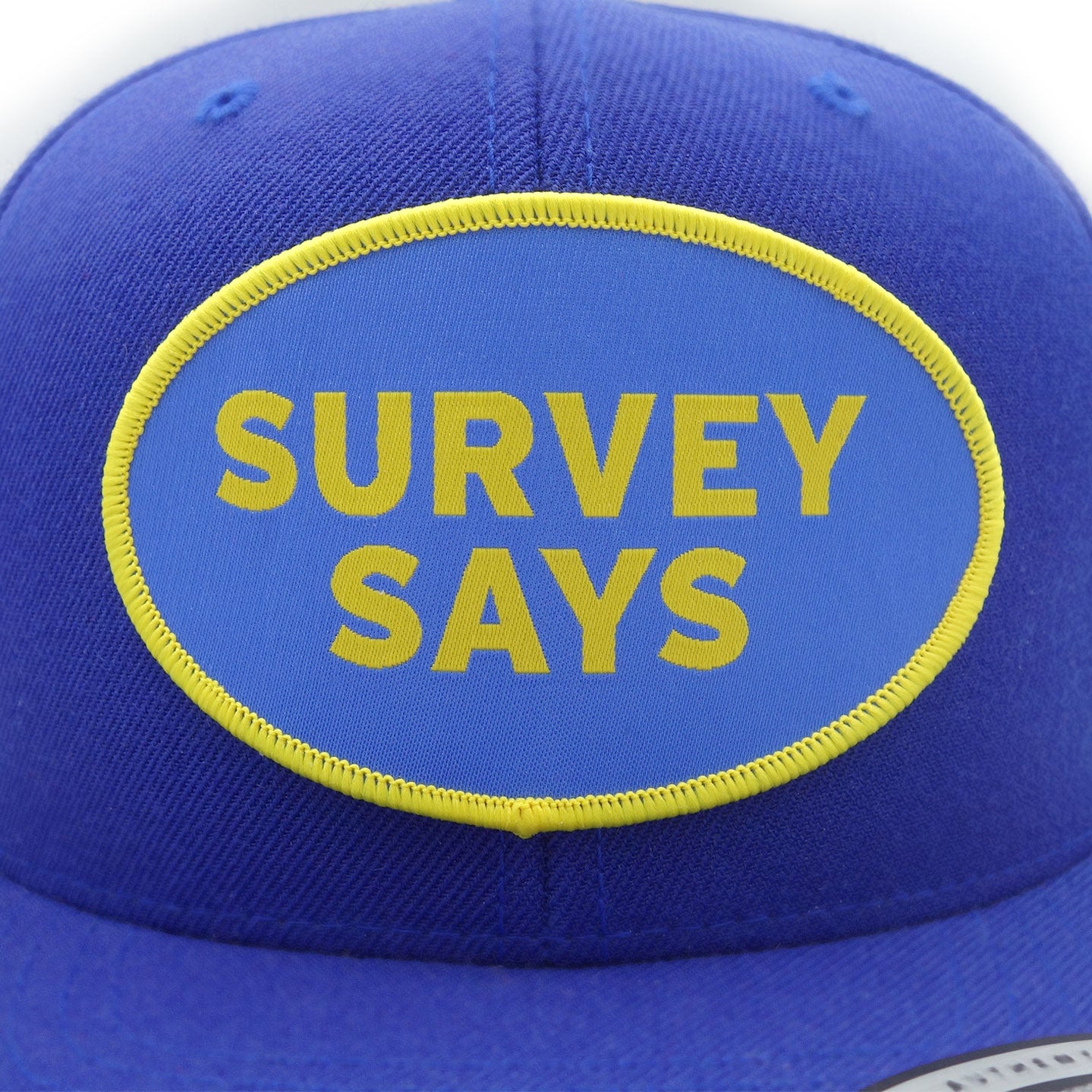 Stylish and comfortable royal blue flat bill cap with the classic Survey Says logo.